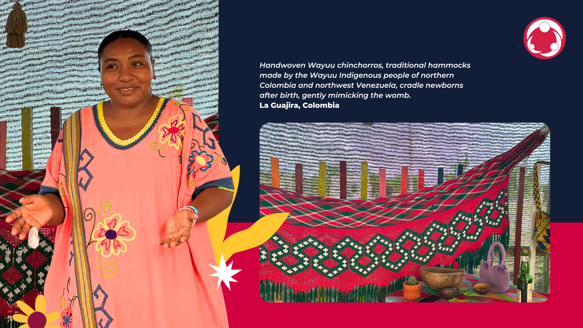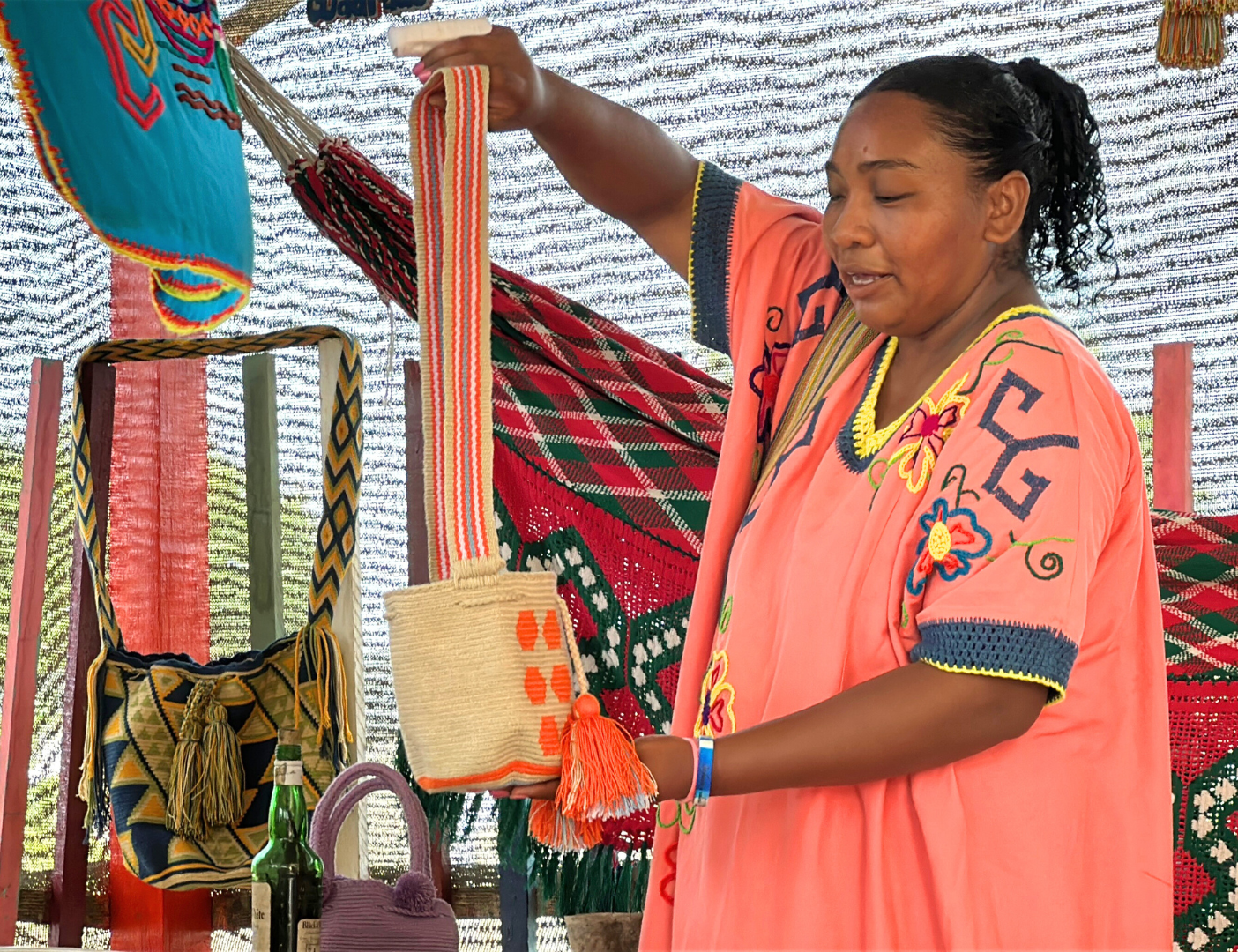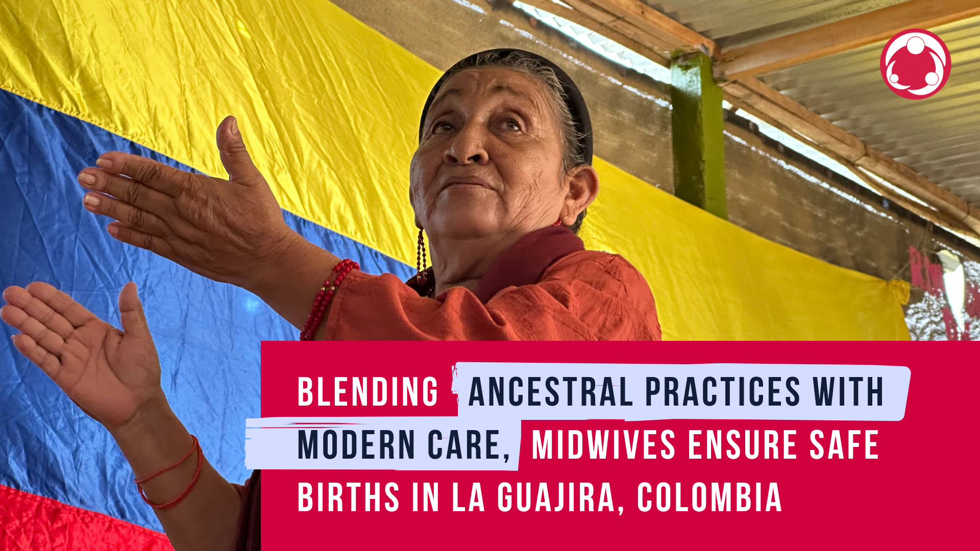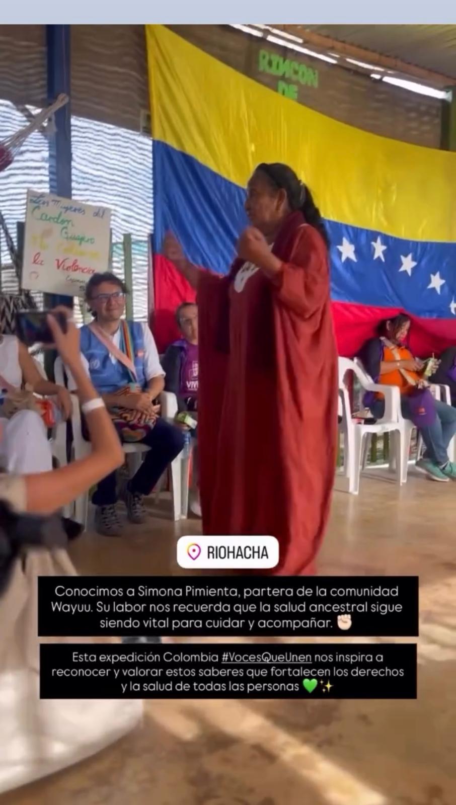 Un représentant de I.P.S.I. Outtajiapuleeun établissement de santé primaire indigène de La Guajira, travaille en étroite collaboration avec cette sage-femme et d'autres sages-femmes de la communauté, afin de fournir des services de santé respectueux de la culture et de soutenir les initiatives locales en matière de santé et de bien-être.